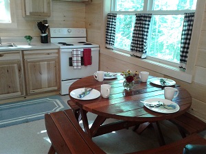 Hide Away Haven's fourth cabin; the Cedars. This is a photo of the kitchen.