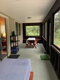 Hide Away Haven's forth cabin; The Cedars. This is a photo of the Large Enclosed Porch Left hand View.