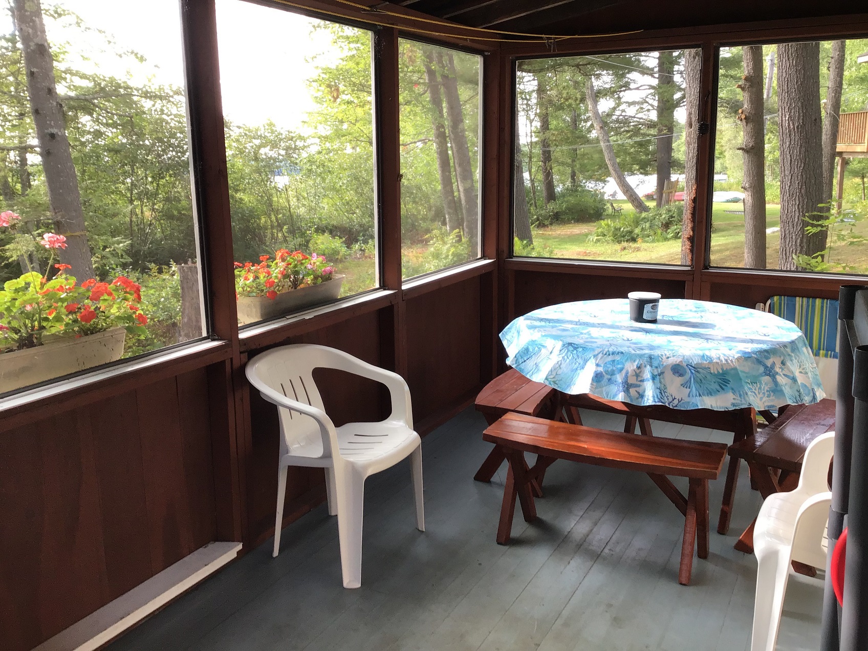 Hide Away Haven's third cabin; The Den. This is a photo of the Porch.