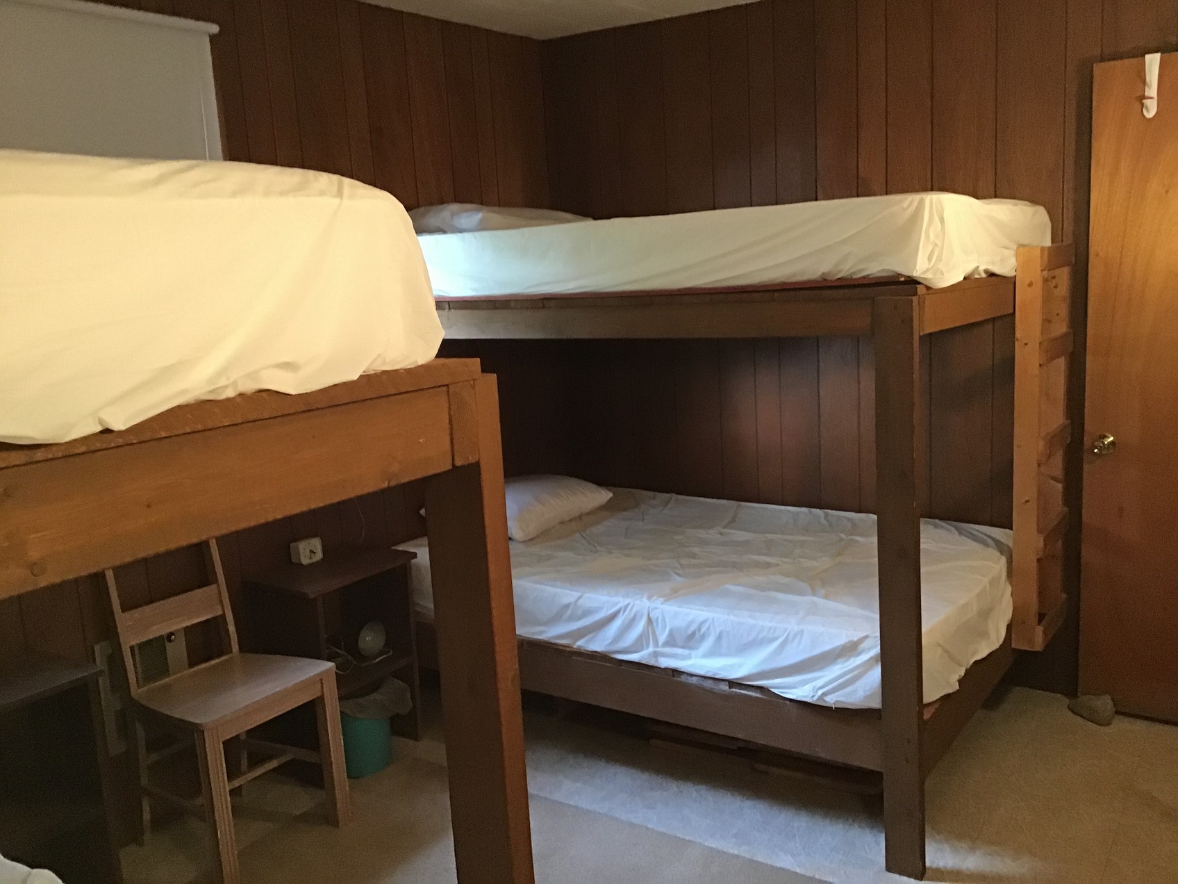 Hide Away Haven's third cabin; The Den. This is one photo of the bunk bed room.